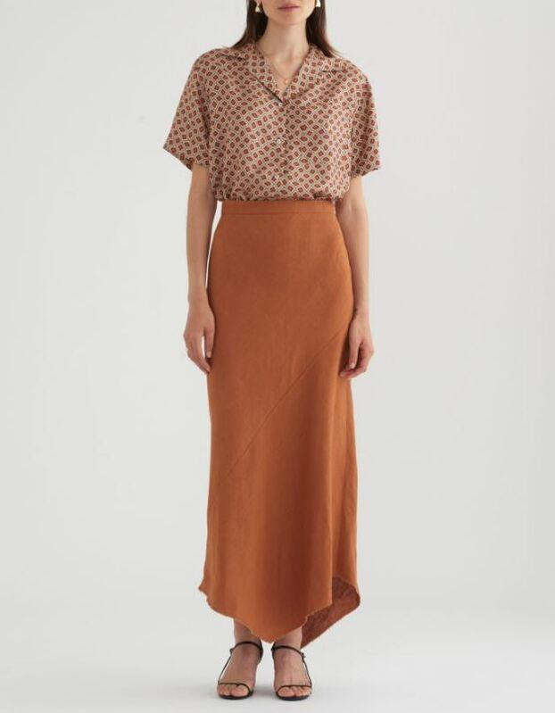Đặc điểm của chân váy xéo là phần đuôi được cắt xéo thay vì bằng, tạo vẻ thanh lịch và thời thượng hơn.