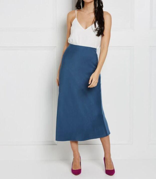 Bạn có thể kết hợp một chiếc chân váy xéo màu trơn với một chiếc áo hai dây mảnh để trông thật nóng bỏng.