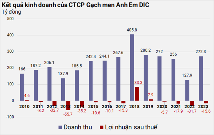 DIG thoái vốn công ty gạch men này trong bối cảnh nhiều năm doanh nghiệp không mang lại lợi nhuận. Từ khi thành lập tới nay, chỉ 3 năm kinh doanh có lợi nhuận, còn lại đều thua lỗ, mặc dù doanh thu mỗi năm hơn 230 tỷ đồng (giai đoạn 2010 - 2023).