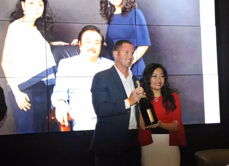 Tác giả Trần Uyên Phương nhận lời chúc mừng từ đại diện ForbesBooks.