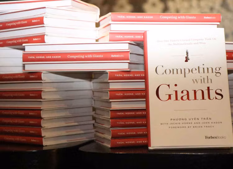 “Competing with Giants” là kết quả công trình nghiên cứu suốt 4 năm của doanh nhân Trần Uyên Phương viết chính, sau khi kết thúc chương trình đào tạo lãnh đạo tại Đại học Harvard năm 2012, với sự tham gia của hai đồng tác giả là nhà báo Jackie Horne (người Anh) và chuyên gia kinh tế John Kador (người Mỹ).