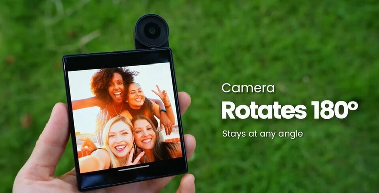 Thiết kế này gợi nhớ đến một số mẫu flagship sáng tạo trong quá khứ như Oppo N1 nhưng đã rất hiếm gặp trên thị trường hiện nay. Máy cũng được trang bị màn hình AMOLED 4 inch với tỷ lệ gần như vuông 1:1.