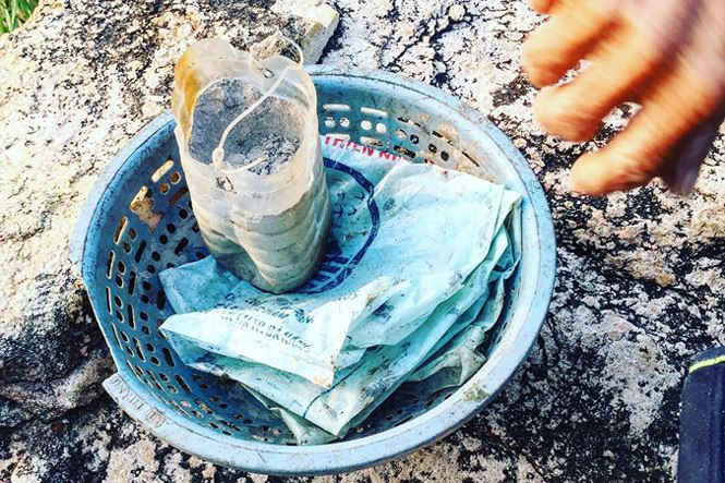 “Ngon lắm. Không đi không được”- chị Phấn cười hể hả dưới cái mũ tai bèo rách vành. “Đồ nghề đây”- chị chìa ra. Cái rổ con, một cái hũ đựng tro cắt từ chai nước, cái muỗng móp. “Trừ khi nó hư thì thôi. Còn không thì không đổi đồ khác đâu. Nghề nào cũng có Tổ. Cào mứt không có Tổ, chỉ có cái rổ rách vẫn cố dùng, vì sợ đổi sẽ “xui”.