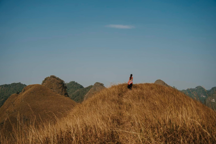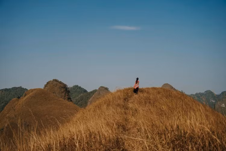 Để đến điểm ngắm bao quát không gian, chiêm ngưỡng những đồi cỏ cháy vàng ruộm nhấp nhô, xa xa là dãy núi trập trùng, bạn phải leo bộ khoảng 15 phút, nên mang theo áo ấm, giày thể thao leo núi, nước uống