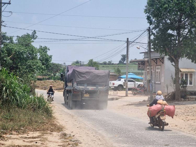 Một số người dân ở đây cho biết, hàng ngày có hàng chục chiếc xe chạy qua đây, bụi mù mịt, bám vào cây trồng. Môi trường, không khí ô nhiễm vì bụi bẩn, đường sá bị hư hỏng. Cuộc sống của người dân bị ảnh hưởng nặng nề. Người dân phải bơm nước tưới đường cho đỡ bụi.