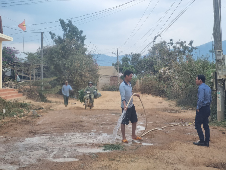 | Người dân phải tưới nước hàng ngày cho đỡ bụi. |