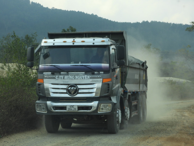 | Xe chở đá từ mỏ đá của Công ty Việt Tân đi ra. |