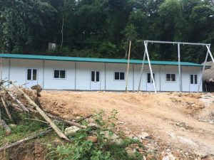 Với tổng chi phí hơn 200 triệu đồng, các lớp học được thiết kế lắp ghép trên nền bê tông, lợp mái tôn 3 lớp chống nóng, vách ghép bằng tôn panel chống nóng, sàn lát gạch men. Công trình đã hoàn thành đúng dự kiến và được đưa vào sử dụng từ tháng 12/2017, để các con có lớp học mới trước khi gió rét mùa đông đến.