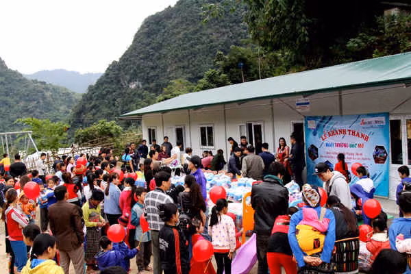 Ngày khánh thành trường mới thực sự trở thành ngày hội của dân bản