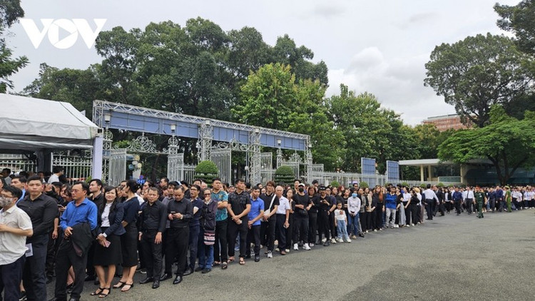 18h20: Tại Hội trường Thống Nhất, TP HCM, người dân TP HCM và các địa phương lân cận trở về Hội trường Thống Nhất viếng Tổng Bí Thư Nguyễn Phú Trọng rất đông.