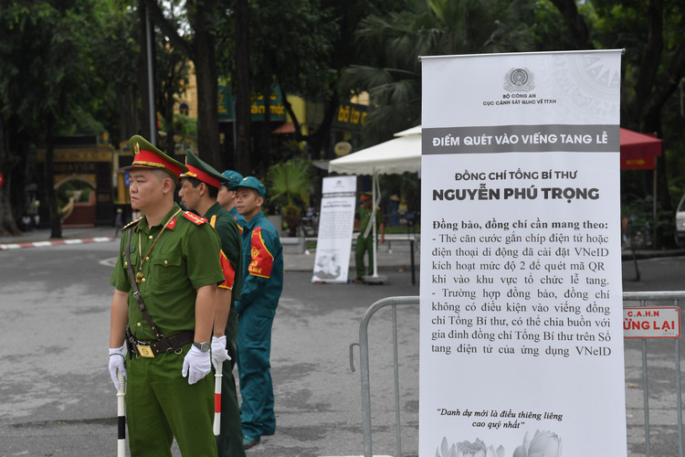 09h05: Người dân xếp hàng, chờ vào viếng Tổng Bí thư Nguyễn Phú Trọng. Theo thông báo của Ban Tổ chức Lễ tang, sau 18h hôm nay 25/7, Ban Tổ chức Lễ tang sẽ tạo điều kiện sắp xếp cho Nhân dân vào viếng Tổng Bí thư Nguyễn Phú Trọng. Khi đến viếng, người dân mang theo thẻ căn cước/ căn cước công dân gắn chip điện tử hoặc điện thoại di động cài đặt VNeID kích hoạt mức độ 2 để quét mã QR.