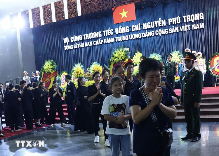 Linh cữu Tổng Bí thư Nguyễn Phú Trọng quàn tại Nhà tang lễ Quốc gia số 5 Trần Thánh Tông, Hà Nội. Ảnh: TTXVN