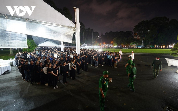 Đã quá giờ viếng theo thông báo của Ban tổ chức nhưng dòng người vẫn xếp hàng dài. Vì thế, Ban tổ chức quyết định mở cửa xuyên đêm, đến khi nào hết người đến viếng mới dừng.