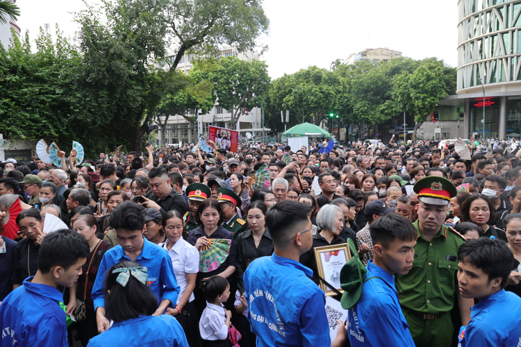 15h50: Đông đảo người dân vẫn xếp hàng chờ viếng Tổng Bí thư Nguyễn Phú Trọng. Một số cầu thủ Đội tuyển bóng đá quốc gia như Duy Mạnh, Quang Hải... cũng xếp hàng đợi viếng Tổng Bí thư trong niềm thương tiếc.