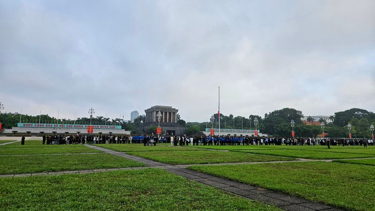 6h00: Quần chúng nhân dân có mặt từ sớm để tham dự Lễ thượng cờ rủ tại Quảng trường Ba Đình, chính thức bắt đầu Quốc tang Tổng Bí thư Nguyễn Phú Trọng.