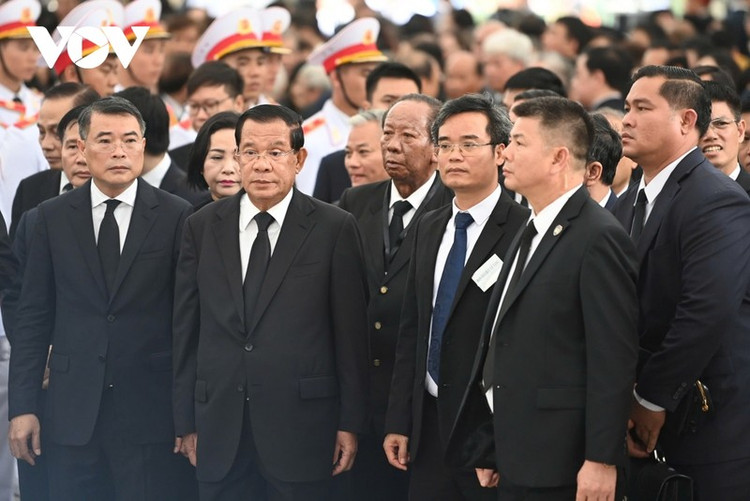 09h46: Đoàn đại biểu Campuchia do Chủ tịch Đảng Nhân dân Campuchia, Chủ tịch Thượng viện Campuchia Hun Sen làm Trưởng đoàn.
