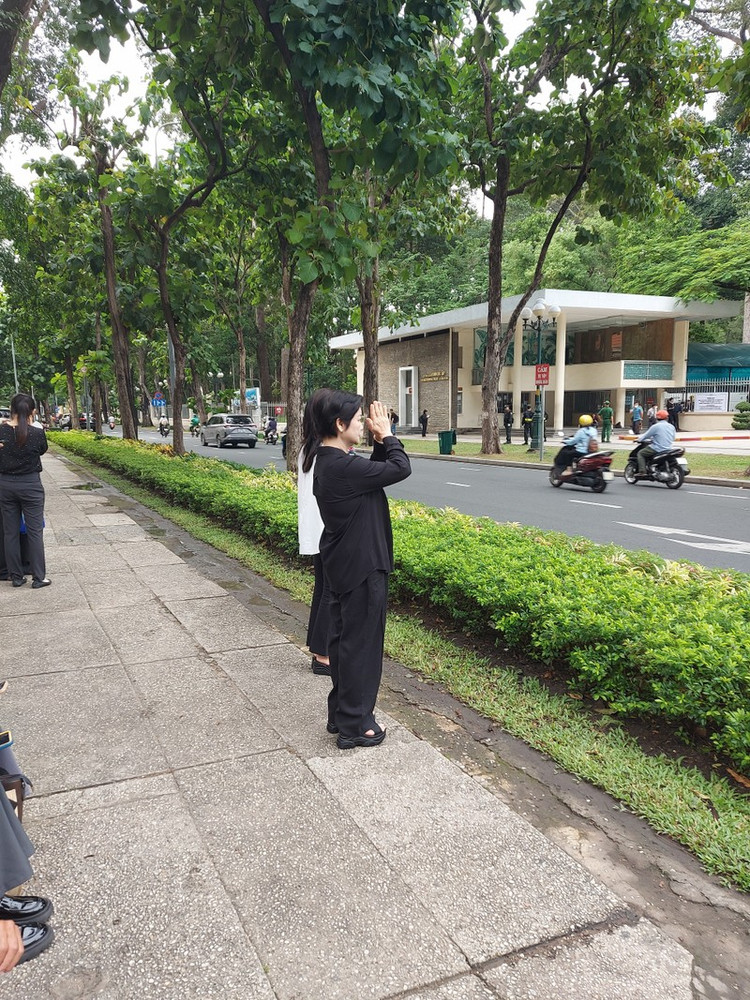 | Nhiều người dân trong khi chờ vào viếng Tổng Bí thư Nguyễn Phú Trọng đã đứng phía ngoài vái vọng trước Hội trường Thống Nhất để tỏ lòng thành kính. Ảnh Hữu Thông |
