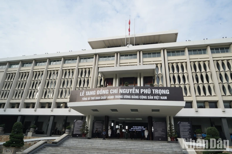 Lễ viếng, Lễ truy điệu Tổng Bí thư Nguyễn Phú Trọng được tổ chức cùng thời gian trên tại Hội trường Thống Nhất, TP HCM và tại quê nhà xã Đông Hội, huyện Đông Anh, thành phố Hà Nội.