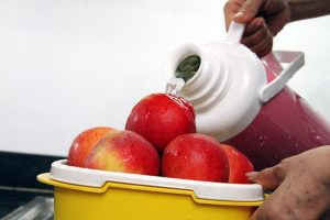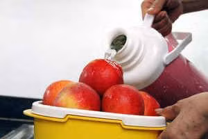 Để những trái táo có thể tươi mọng từ lúc thu hoạch người ta phải dùng các phương pháp bảo quản. Trong đó, không thể không kể đến những loại hóa chất độc hại có thể gây nguy hiểm cho sức khỏe người sử dụng. Để biết quả táo có bị nhiễm độc chất không, chỉ cần dội nước sôi lên quả táo.