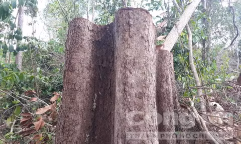 Những cây cổ thụ bị cưa hạ tại xã Ia Dom, huyện Đức Cơ, Gia Lai