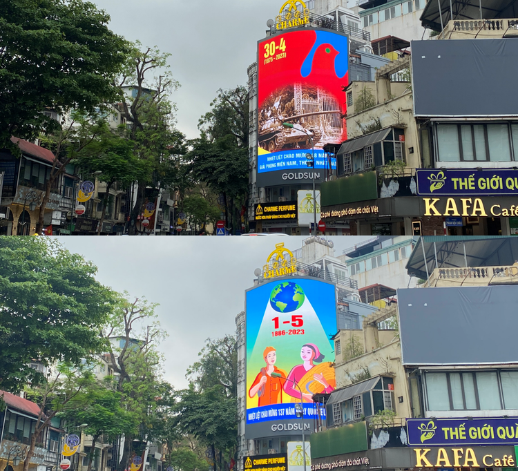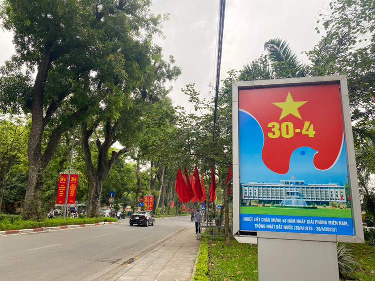 Những ngày này, nhiều tuyến phố Hà Nội rực rỡ cờ hoa, pano, áp phích... chào mừng 48 năm Ngày Giải phóng miền Nam, thống nhất đất nước (30/4/1975 - 30/4/2023) và 137 năm Ngày Quốc tế Lao động (1/5/1886-1/5/2023).