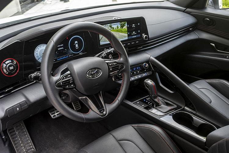 Elantra thế hệ mới sở hữu một không gian hiện đại, giàu công nghệ và hướng tới người lái. Tiêu biểu là màn hình giải trí trung tâm dạng cảm ứng 10,25 inch, thiết kế kéo dài nối liền màn hình kỹ thuật số Digital 10,25 inch phía sau vô-lăng, giúp tối ưu khả năng quan sát cho người cầm lái. Đặc biệt, màn hình kỹ thuật số còn hiển thị chủ đề theo Drivemode của xe hoặc theo sở thích của chủ nhân.