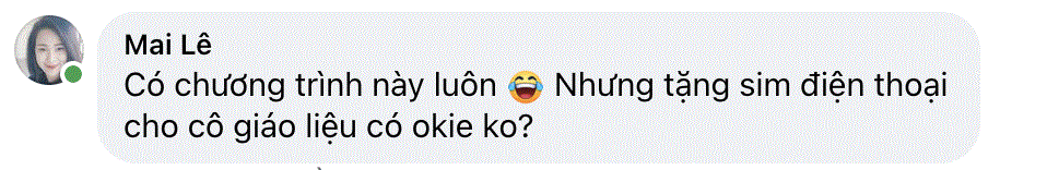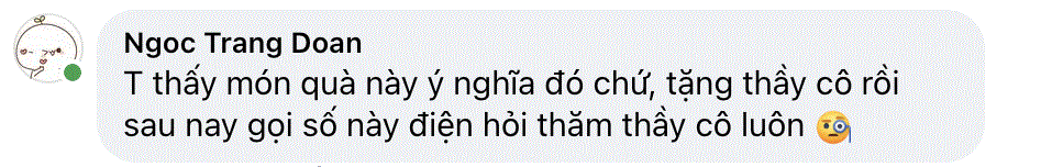 Một số cư dân mạng khác lại cảm thấy thích thú với thông điệp của chương trình và cho rằng đây cũng là một món quà vừa độc lạ, vừa ý nghĩa để dành tặng thầy cô trong dịp 20/11. Đồng thời, bày tỏ quan điểm ý nghĩa không phải nằm ở giá trị món quà mà số điện thoại này sẽ trở thành sợi dây kết nối để lứa học trò chẳng còn ngần ngại gọi điện hỏi thăm thầy cô. Đây mới thật sự là điều mà cả thầy và trò cảm thấy trân quý.