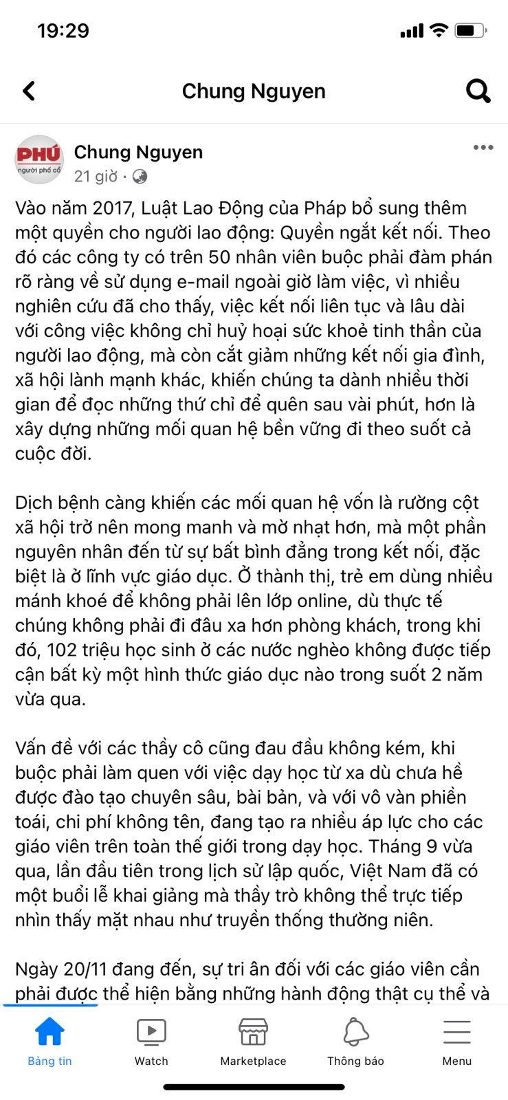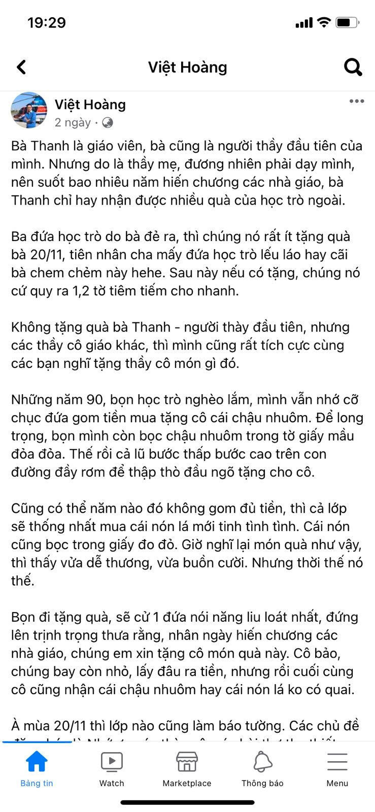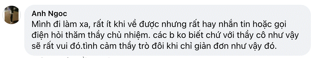 “Vừa rồi, thầy chủ nhiệm cũ của mình qua đời, vừa trong đại dịch, vừa là lúc nhiều anh em bạn bè bận rộn, nên được mấy người đưa thầy về nơi an nghỉ cuối cùng. Nói ra thì xấu hổ, nếu không có dịp 20 năm ra trường, khéo đa số cũng chả biết nhà thầy ở đâu, thầy sống thế nào.” Anh Lê Tùng Anh, một Facebooker đã tốt nghiệp hơn 20 năm cho biết.