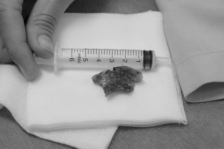 Các bác sĩ đã tiến hành gắp dị vật thành công. Dị vật được xác định là hàm răng giả có kích thước khoảng 5 x 3 cm. Sau khi hàm răng giả được lấy ra tình trạng bệnh nhân ổn định, tỉnh táo, không ghi nhận biến chứng, có thể ăn uống nhẹ và được xuất viện sau đó.