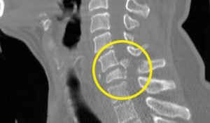 Kết quả chụp X quang cho thấy, anh bị gãy cột sống cổ di lệch thứ phát sau tai nạn chèn vào tuỷ gây liệt chân tay. Anh An phải mổ và điều trị phục hồi liệt lâu dài.