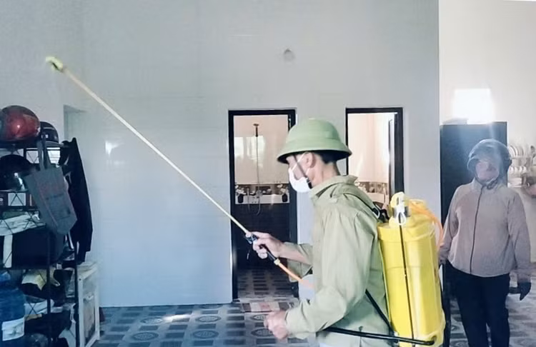 Phun thuốc diệt muỗi tại gia đình bệnh nhân và các hộ gia đình xung quanh/Ảnh soyte.hatinh.gov.vn