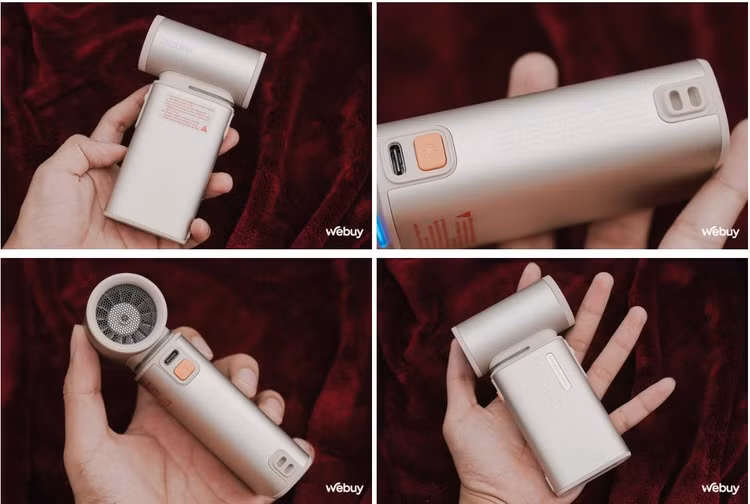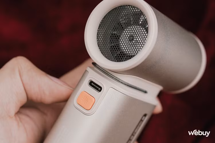 Phần đầu quạt đi kèm hai dạng phụ kiện: đầu thổi vuông và tròn, không chỉ để làm mát mà còn có thể tận dụng để thổi bụi hoặc bơm hơi cho các vật dụng như phao bơi hay bóng bay. Khả năng thay đổi này giúp Ultra1 vượt qua giới hạn của một chiếc quạt cầm tay thông thường, mở rộng công năng sử dụng trong nhiều tình huống khác nhau.