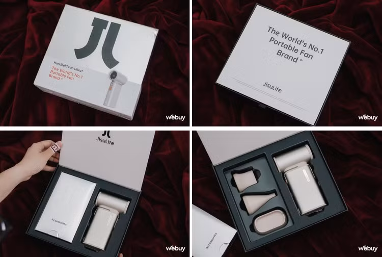 Là model quạt cầm tay flagship nên không có gì khó hiểu khi Jisulife Ultra1 có cách đóng hộp như một chiếc smartphone cao cấp. Bên cạnh đó, Jisulife cũng tặng người dùng cực kỳ nhiều "đồ chơi" đi kèm.