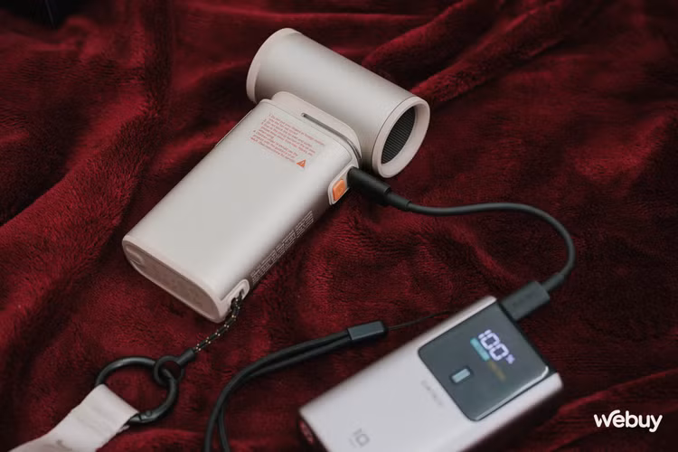 Quạt có viên pin dung lượng lên tới 9.000mAh. Thời gian sạc đầy pin mất khoảng 2,5 giờ với công nghệ sạc nhanh 18W, một con số khá hợp lý với dung lượng pin lớn. Tuy nhiên, khi sử dụng ở tốc độ cao nhất, độ ồn ghi nhận đạt mức khoảng 50 dB, tương đương với tiếng quạt gió thông thường, nhưng có thể gây chút khó chịu trong không gian yên tĩnh.