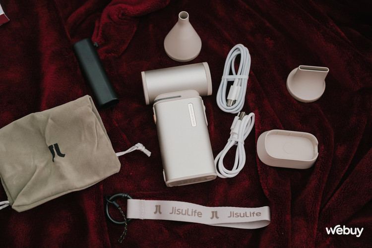 Unbox quạt Jisulife Ultra1 khiến nhiều người liên tưởng tới những chiếc smartphone gập cao cấp như OPPO Find N5. Chỉ là hộp đựng thôi nhưng cũng cực kỳ chỉn chu và cao cấp. Toàn bộ "đồ chơi" tặng kèm quạt Ultra1, gồm: túi đựng quạt, chổi vệ sinh quạt, 2 đầu thổi, 2 cáp USB-C (A-C và C-C), đế cao su có lỗ ren tiêu chuẩn 1/4 inch để gắn lên tripod hoặc các phụ kiện khác