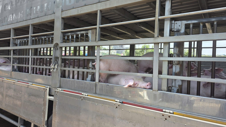 Một số con heo trên xe tải có dấu hiệu nhiễm dịch tả lợn châu Phi/Ảnh DMS