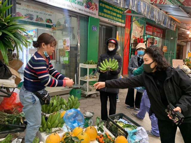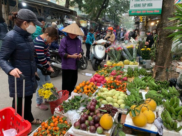 Hoa quả, chuối, hoa tươi luôn được người dân ưu tiên mua sáng nay