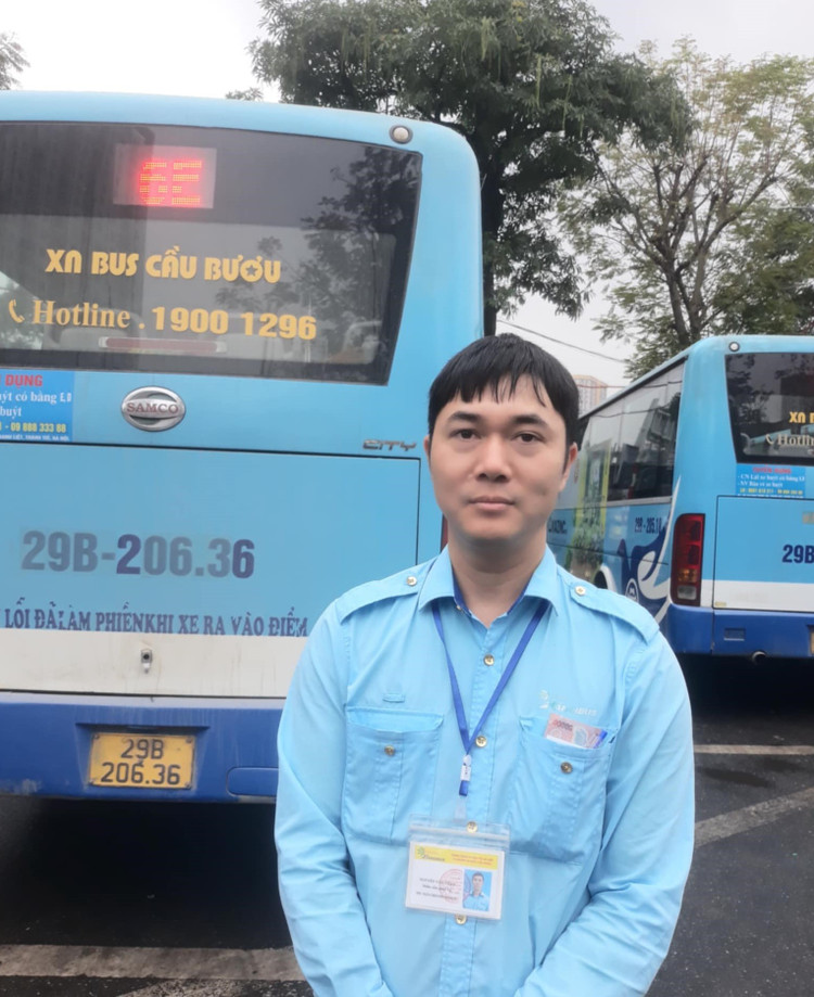 Anh Nguyễn Văn Thạo, nhân viên phục vụ xe buýt. Ảnh: Hằng Hà