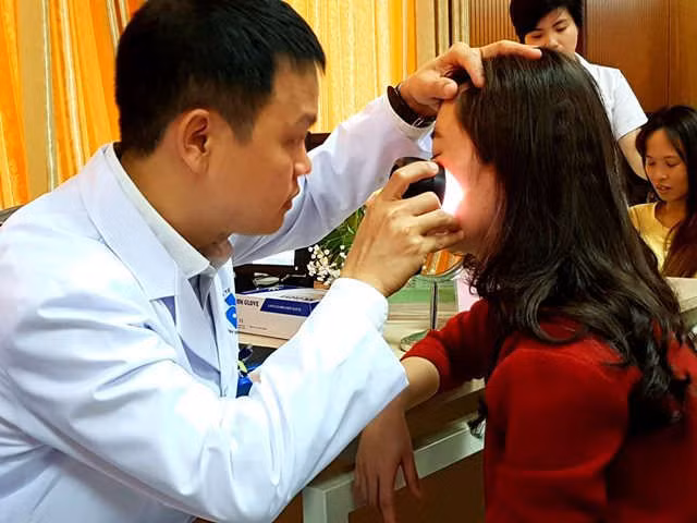 Tại ngày hội, các bác sĩ đã thăm khám cho một thiếu nữ 15 tuổi (Nam Định) dày đặc mụn trứng cá sau khi tự ý bôi thuốc. Mẹ bệnh nhân đã phải đưa con đến bệnh viện khám trong tình trạng khuôn mặt chi chít mụn trứng cá, đặc biệt vùng trán dày đặc những mụn trứng cá bọc mủ, gây ngứa ngáy.
