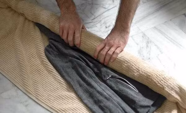Khăn bông là loại khăn thấm nước rất tốt, vì vậy bạn hãy cuộn quần áo ẩm ướt vào một chiếc khăn bông dày sẽ giúp quần áo của bạn nhanh chóng khô giáo.