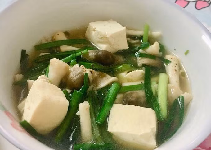 Đúng như tên gọi của món ăn, nguyên liệu chính của món canh này bao gồm thịt, lá hẹ và nấm, ngoài ra cần thêm một số nguyên liệu và gia vị: