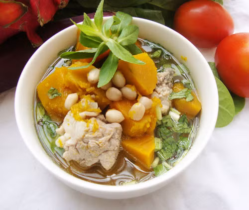 Đây là món được truyền tụng là “thần dược” cho trí não vì nó chứa axit glutamic – một chất cần thiết cho hoạt động của não bộ, đóng vai trò quan trọng trong hỗ trợ các phản ứng chuyển hóa ở tế bào thần kinh, tăng cường thúc đẩy khả năng học tập và khả năng ghi nhớ. Thêm vào đó, thịt bí đỏ giàu tryptophan – axit béo thiết yếu hình thành từ protein dùng tổng hợp serotonin, một dạng thành phần hóa học gây phấn chấn có tác dụng chống suy nhược thần kinh, mệt mỏi tinh thần.