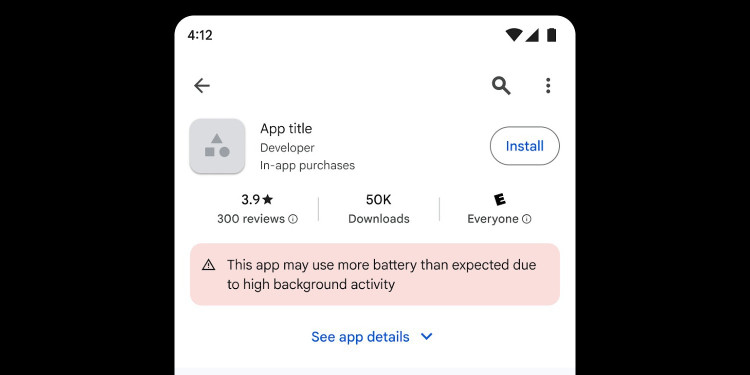 Kể từ tháng 3, Google Play bắt đầu hiển thị cảnh báo rõ ràng trên trang thông tin ứng dụng Android, cảnh báo người dùng về tình trạng tiêu hao pin quá mức.