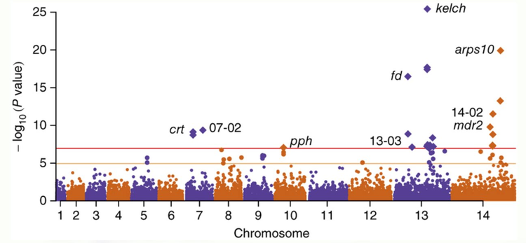 Biểu đồ về tình trạng kháng thuốc Artemisinin (Nguồn:trúc di truyền của Plasmodium falciparum kháng artemisinin, Nature Genetics 47).