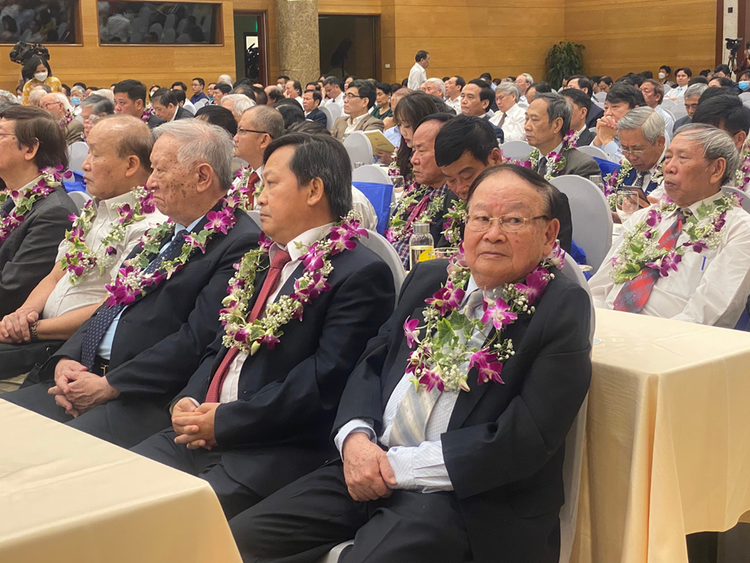 GS.TSKH Nguyễn Hữu Tăng (ngồi đầu) tại Lễ tôn vinh trí thức khoa học và công nghệ tiêu biểu năm 2022