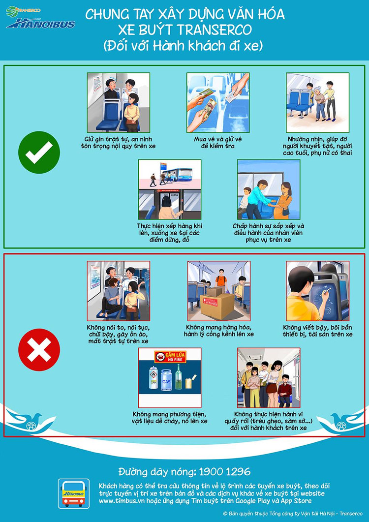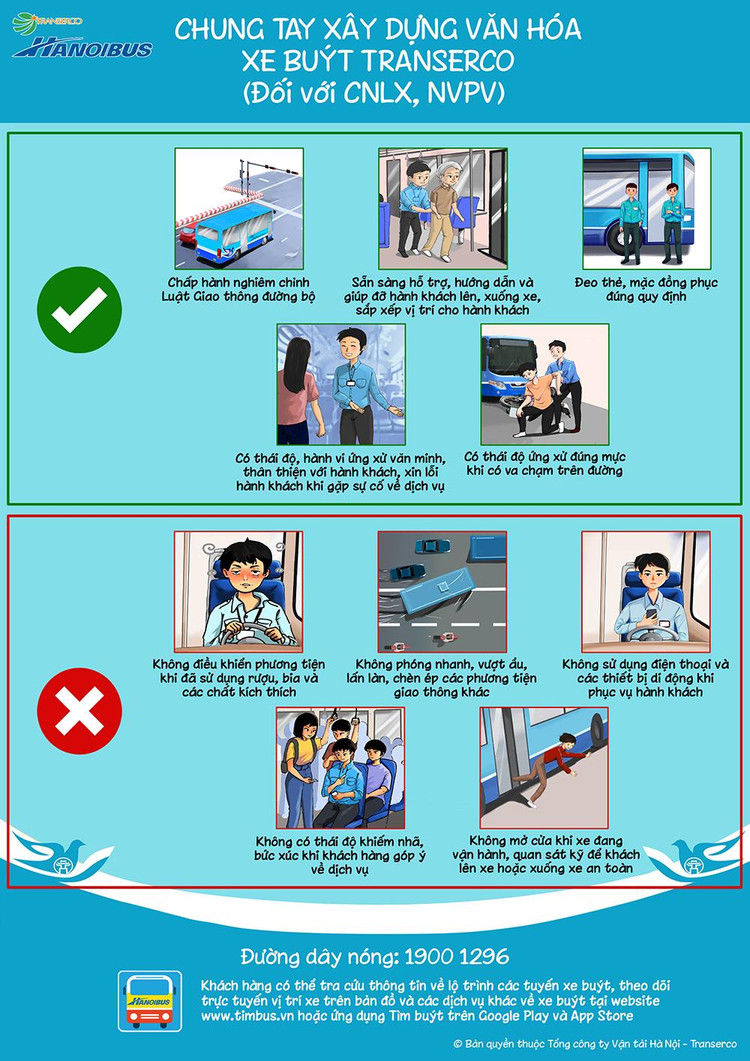 Theo đó, hưởng ứng Tháng Thi đua cao điểm chào mừng các ngày lễ lớn của Thủ đô và Năm An toàn giao thông quốc gia 2022, với mục tiêu không ngừng nâng cao chất lượng dịch vụ xe buýt Thủ đô, xây dựng văn hóa xe buýt “An toàn - Văn minh - Thân thiện”, Transerco ban hành Bộ quy tắc ứng xử trên xe buýt.