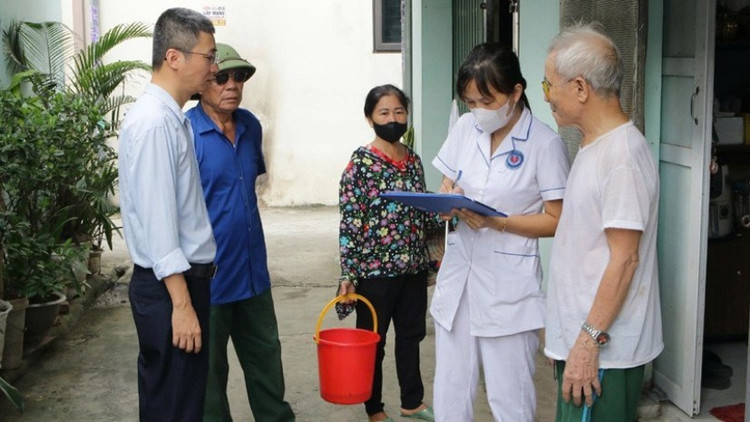 Cán bộ y tế hướng dẫn người dân trên địa bàn thành phố Hà Nội thực hiện các biện pháp phòng, chống các bệnh truyền nhiễm tại cộng đồng. Ảnh SYT