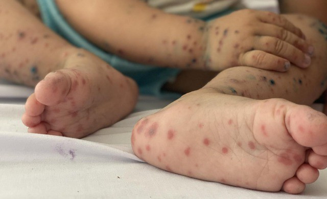 Bệnh tay chân miệng lây lan chủ yếu qua đường tiêu hóa và tiếp xúc trực tiếp với dịch tiết từ mũi, họng, phân hoặc các bóng nước của người bệnh. Ảnh minh họa/Nguồn SKĐS