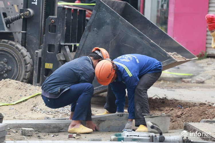 Theo ghi nhận của PV Infonet, tại đường Thái Hà (quận Đống Đa, Hà Nội), nhiều đoạn đường đang đào xới, tập kết ngổn ngang vật liệu xây dựng để lát đá vỉa hè.