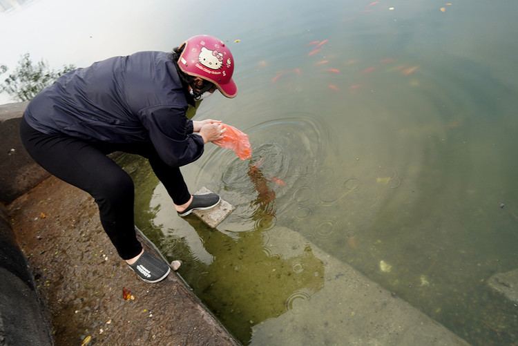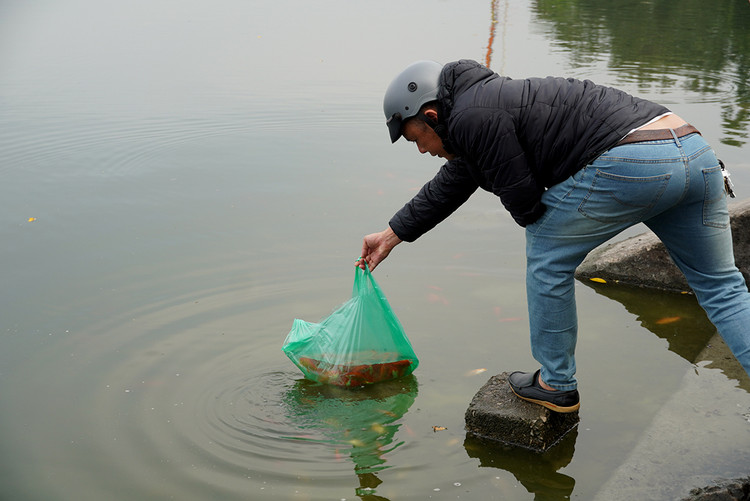 Nhưng cũng có người mang rất nhiều cá ra thả, một hình thức phóng sinh.